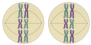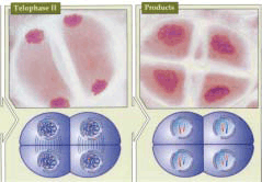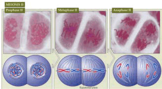Note: Meiosis II as a mechanism is just like mitosis; duplicated chromosomes are distributed equally into new cells, each with the same number of chromosomes as the original. The difference is that you are starting with two cells, and forming a total of 4 new cells.