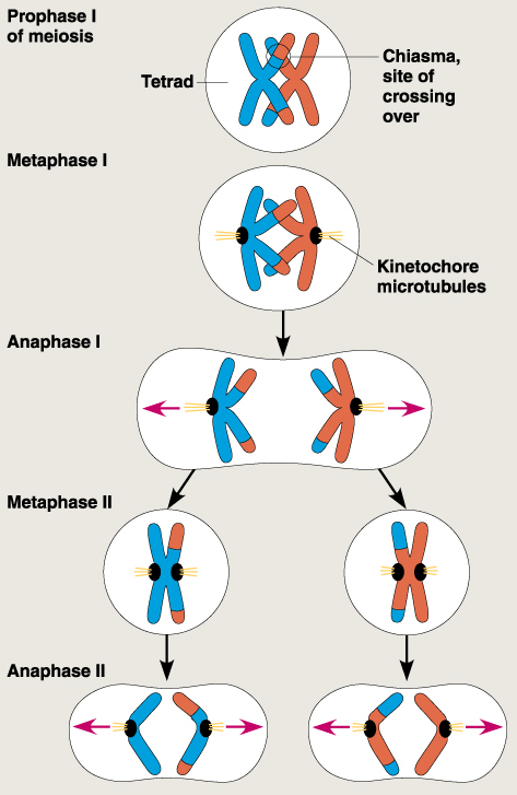 Remember, the purposed of meiosis is to reduce the chromosome number by one half at one point in the life cycle of an organism so that following sexual reproduction (fertilization) the "typical" number of chromosomes will be maintained from generation to generation. Meiosis and sexual reproduction are genetic events, critical to maintaining (and obtaining) genetic variation among members of a species. This variation is essential for most organisms so the species can be responsive to changing environmental conditions through time. (More on this later.)